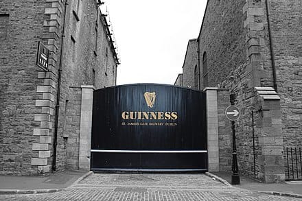 Guinness factory gate on Crane Street in Dublin, Ireland.